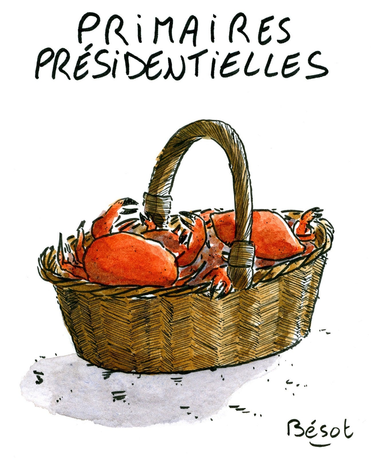 Note: The visual says ‘Presidential primaries’ and is a typical French political satire, using the expression.
